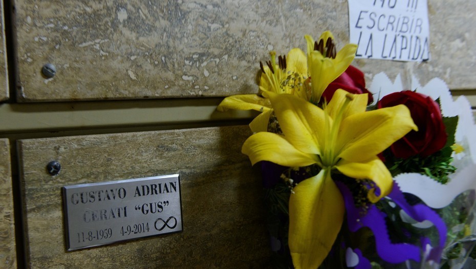 Cerati está en un pasillo del primer piso que conduce a los nichos que van del número 2676 a 2955. Al lado, su padre, Juan Josí Cerati. El nicho de Gustavo lleva el número 2912. Se lee Gustavo Adrián Cerati “Gus” 11-8-1959 -4-9-2014 y el símbolo del infinito. Hay olor a desodorante de ambiente y se escucha música clásica.